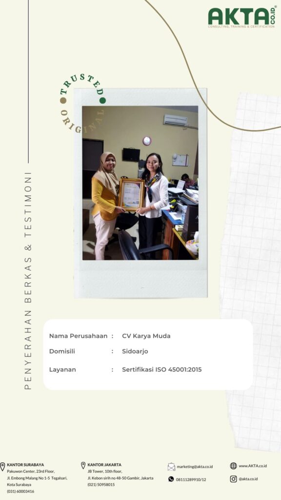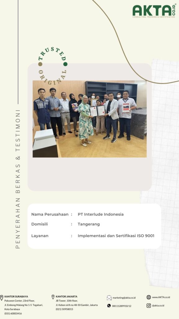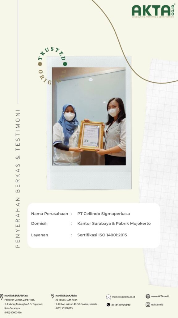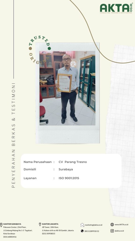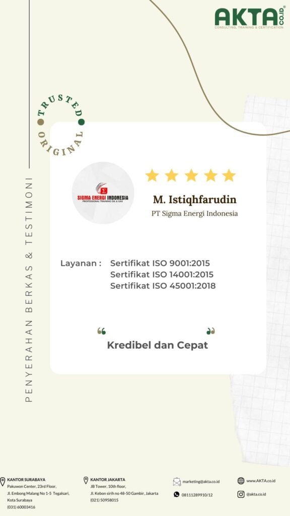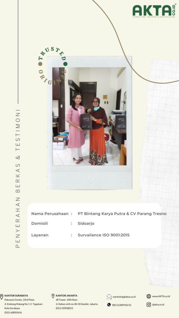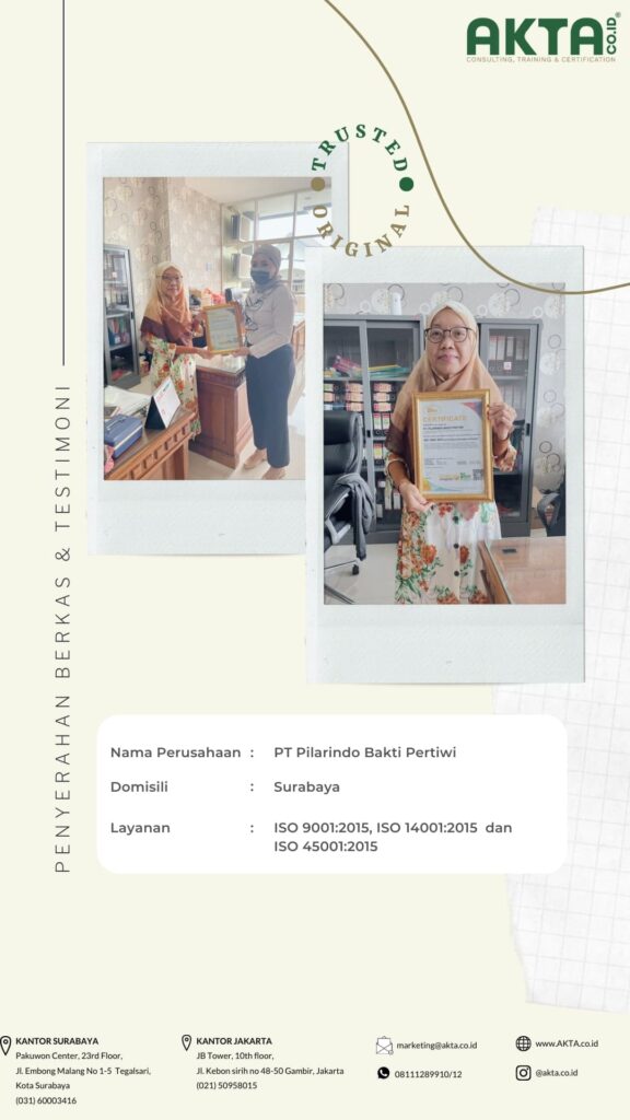 Mengurus sertifikat ISO di Akta Consulting, harganya terbaik dengan kualitas pelayanan yang TOP.